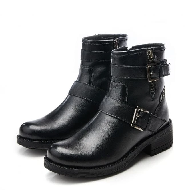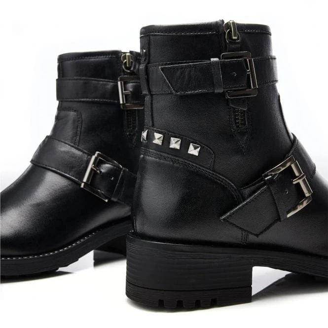 Add a new look to your outfits with Aabby, the biker style ankle boot. We love the double buckle feature, the soft round toe keeps the shoe looking feminine whilst the leather sock ensures they feel as good as they look. The inside zip allows for easy access.