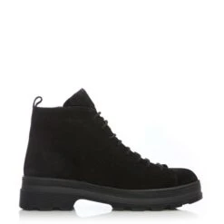 Jude is an all over black suede ankle boot with lace fastening down the front of the boot and a working zip on the inside. Jude is made with suede lining and has a cleated on-trend sole.