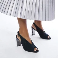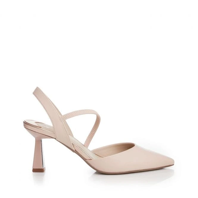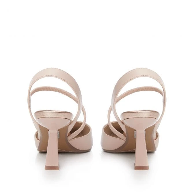 Calling Carenza. The perfectly pointed toe effortlessly elongates your leg, whilst the elasticated asymmetric strap keeps your foot feeling secure – letting the shoe move with you for the ultimate wear. The slip-on nature of the shoe allows for effortless foot entry. Complete with a monogram sole adding to the premium feel. Pair with your occasionwear.