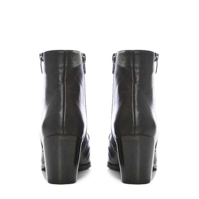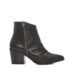 Cuban heeled Coralie. The soft, tumbled leather upper on this boot will stretch and mould to your unique foot shape for a flawless finish and comfortable wear. The ruched vamp, soft square toe and glossy finish add to the impact of this boot. Complete with a zip for easy foot entry. Perfect to pair with a midi dress.