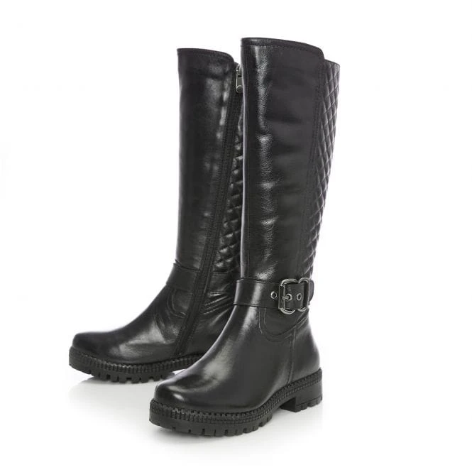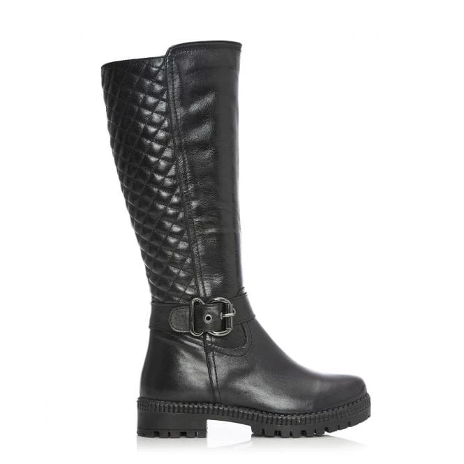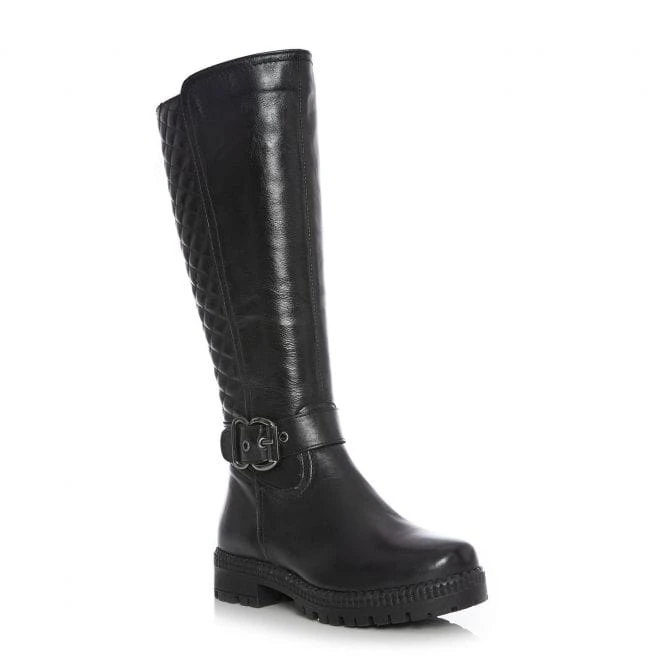Quilted Back Buckle Trim Long Boot