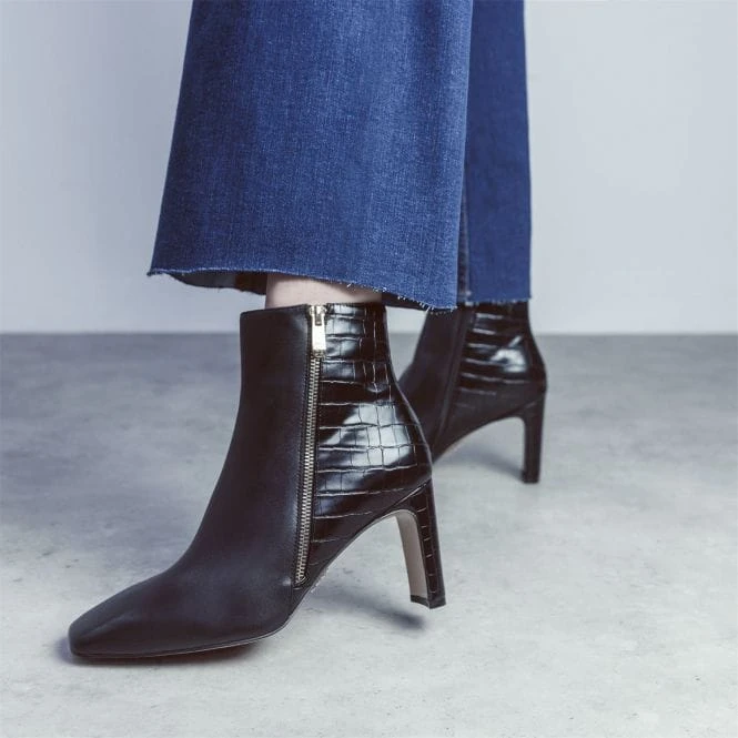 Keep up appearances with Kyrye. We love the contrasting embossed back panel, which adds to the impact if the boot whilst leaving it effortless to style. Complete with a stylish square toe, and luxurious faux fur lining, and leather sock. The zip fastening allows for effortless foot entry.