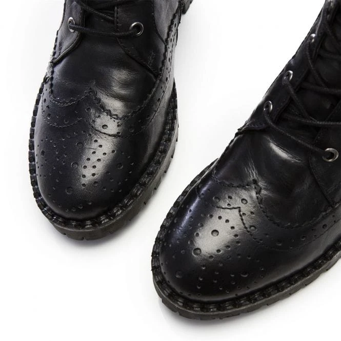 Add a new look to your boot collection with Liberto. We love the brogue style design – the crinkled leather adds another element to this beautiful long boot. The inside zip means you can set the laces and leave them in the perfect place. The soft short pile faux fur lining and leather footbed ensure the boots feel as good as they look. The cleated sole adds a modern twist whilst also providing extra grip – the elastic panel at the back lets the boot move with you for ultimate comfort and provides a snug fit. Perfect to pair with knitwear.