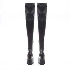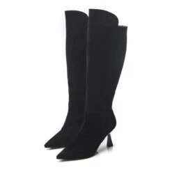 Show up in style with Sarisa. Featuring a stunning swoosh heel knee-high boot is the perfect addition to your shoe collection. The croc effect will effortlessly add texture, whilst the faux fur lining will ensure they feel as glamorous as they look. Style with knitwear.