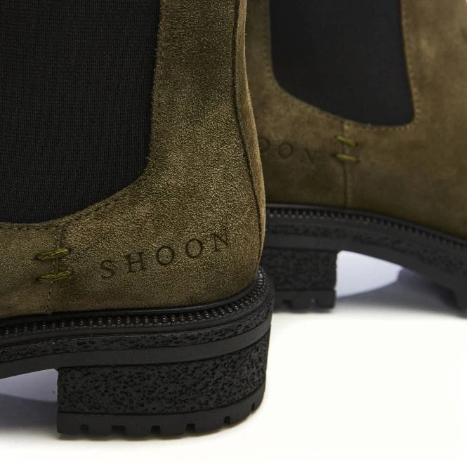 The Shoon suede boot. Adesso is the classic Chelsea boot in this collection, featuring twin elastic panels and heel tab detail – this style is perfect to pair with jeans. Complete with a crepe effect cleated sole, adding grip to the shoe whilst the leather sock ensures a comfortable wear.