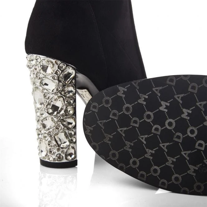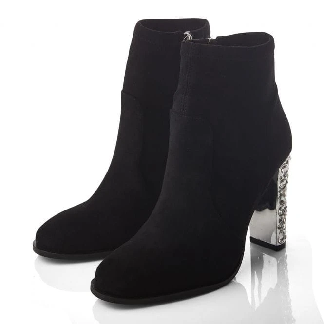 Upgrade your boot collection with Zamina. Featuring a gorgeous glitz heel, perfect for adding a touch of glam to any outfit. The inside zip allows for effortless foot entry whilst the leather sock ensures it feels as luxurious as it looks.