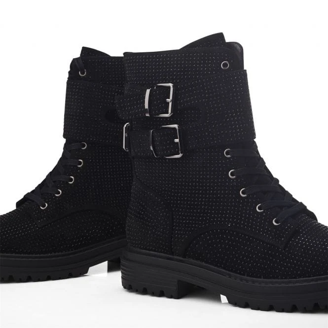 Make an impression in Zori. Featuring gorgeous glitzy detail, this chunky lace up boot has double strap detail and inside zip for effortless foot entry. The soft faux fur lining and leather sock ensure the boot feels as good as it looks.